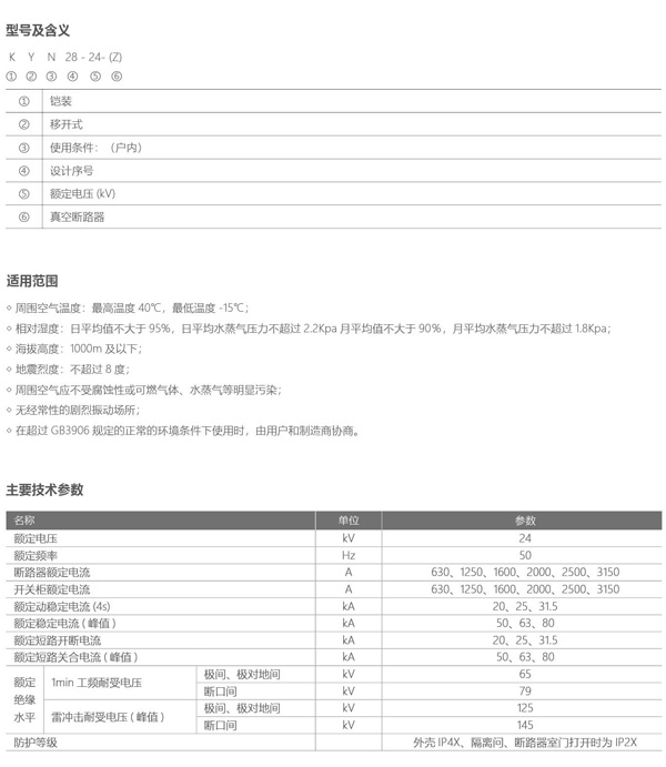 KYN28-24 铠装移开式交流金属封闭开关设备